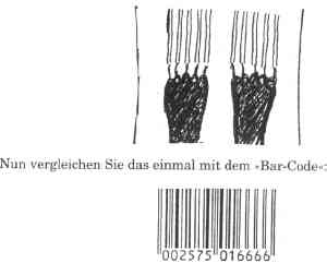 Und ich verspreche Ihnen, daß Sie, wenn sich nicht grob etwas ändert, ohne den Bar-Code bald nicht mehr einkaufen können. Irgendwann bekommen Sie ihn dann eben auf die Hand oder die Stirn.