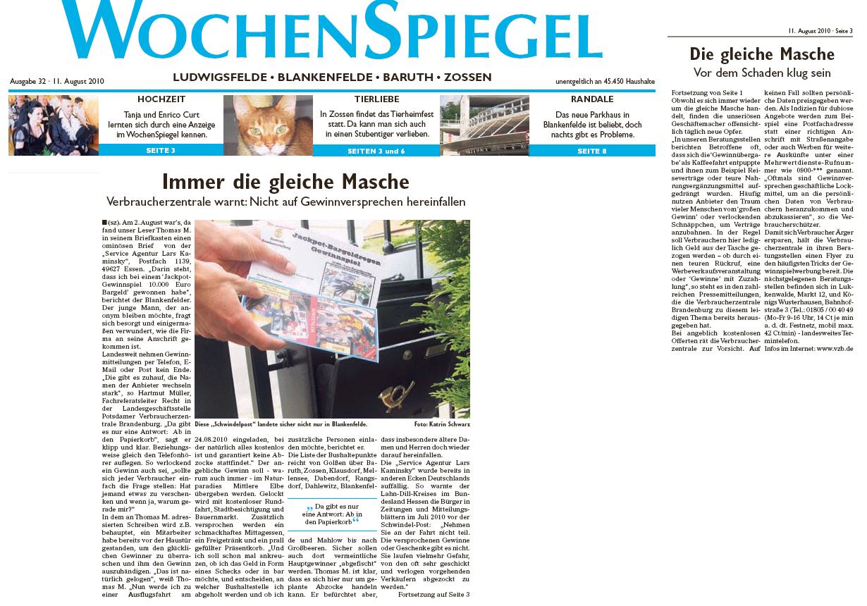 Verbraucherzentrale und Polizei raten zur Vorsicht. Bei den Gewinnmitteilungen handele es sich in der Regel lediglich um ein Lockangebot zur Teilnahme an einer Verkaufsveranstaltung, bei der zumeist überteuerte Waren verkauft würden. Dass es sich um eine fragwürdige Werbemethode handelt, sei unter anderem daran zu erkennen, dass die Firma lediglich eine Postfachadresse in Cloppenburg auf der Antwortkarte angegeben hat.