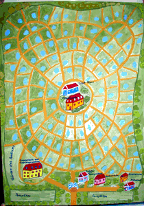 und orange), im Büro die kooperierenden Geschäftspartner, ansonsten