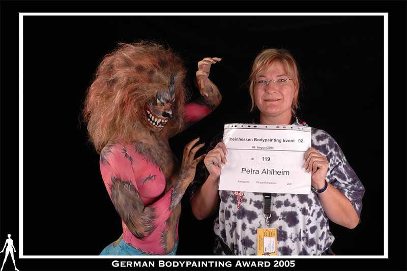 |  | Das Model "Karin" war als Werwolf fantastisch und hat eine akrobatische Bühnenshow abgeliefert. Ohne Schminke nicht wiederzuerkennen. |