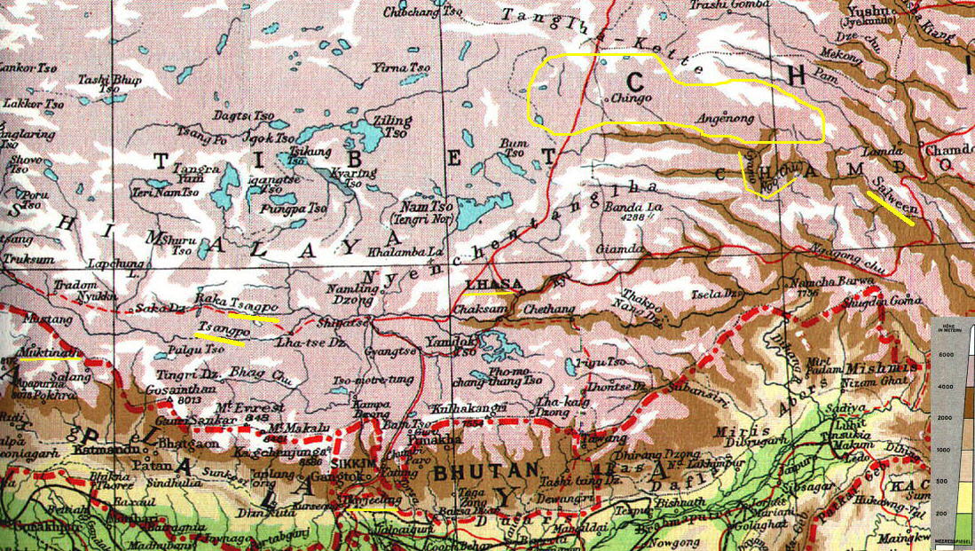 Atlas Gyamo-Ngu-Chu, gelb unterstrichen, der Fluss wird im weiteren Verlauf
