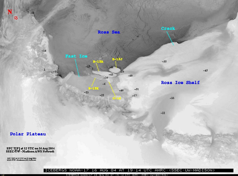 Aufnahmen des Schelfeises lieferten. Zusätzlich wurden Messungen am