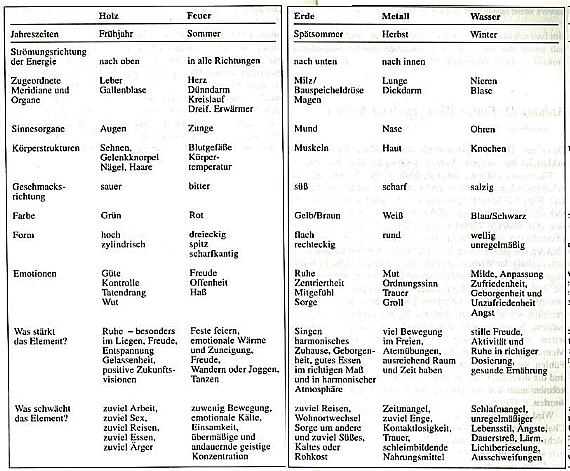 Die Chinesischen 5 Elemente und ihre Zuordnungen