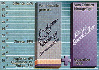 Amalgam besteht zu 50 % aus Quecksilber und 20% aus Zinn.