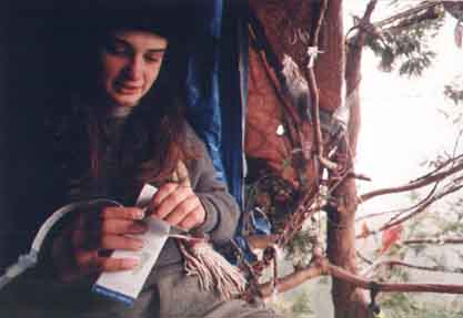 Julia spricht mit Luna, dem Mammut-Baum, auf dem sie lebt: