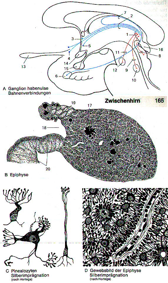 Epiphyse, Glandula pinealis (Zirbeldrüse) A16B liegt als kleiner